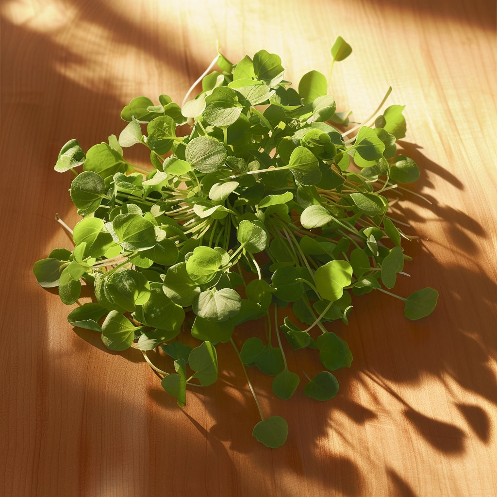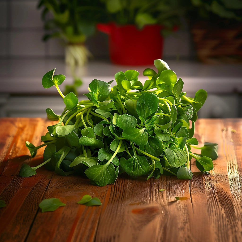 Hojas pequeñas y ovaladas, con un intenso sabor picante y refrescante. Textura crujiente y jugosa, que agrega una sensación fresca y vivaz a cualquier plato.