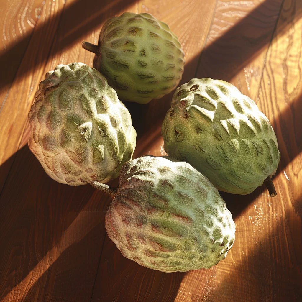 Descubre la exquisita chirimoya, una fruta tropical de pulpa suave y dulce, conocida por su sabor único que combina notas de plátano, piña y fresa.