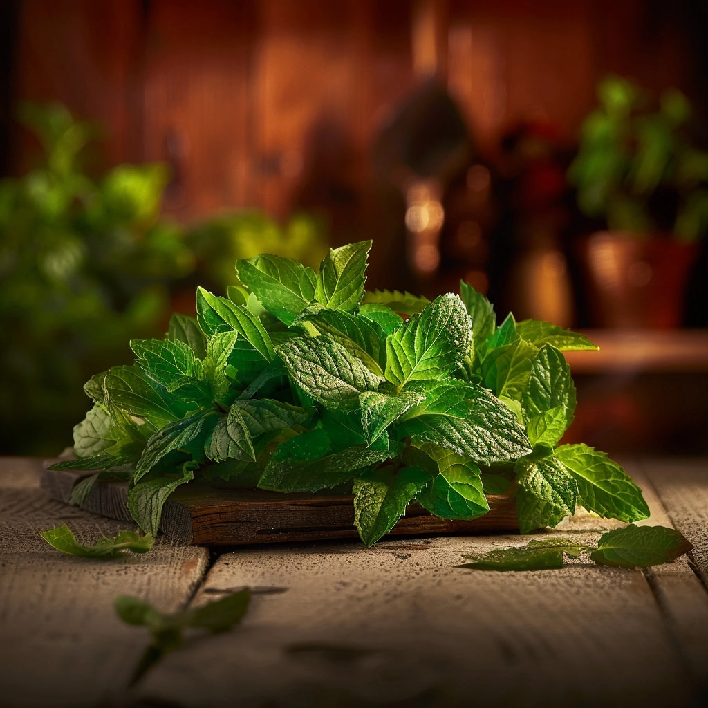 Con sus hojas pequeñas y ovaladas de un verde intenso, la Hierba Buena es reconocida por su aroma mentolado y su sabor fresco y vigorizante. Su versatilidad la convierte en un ingrediente imprescindible en una amplia variedad de platos, desde ensaladas hasta postres.