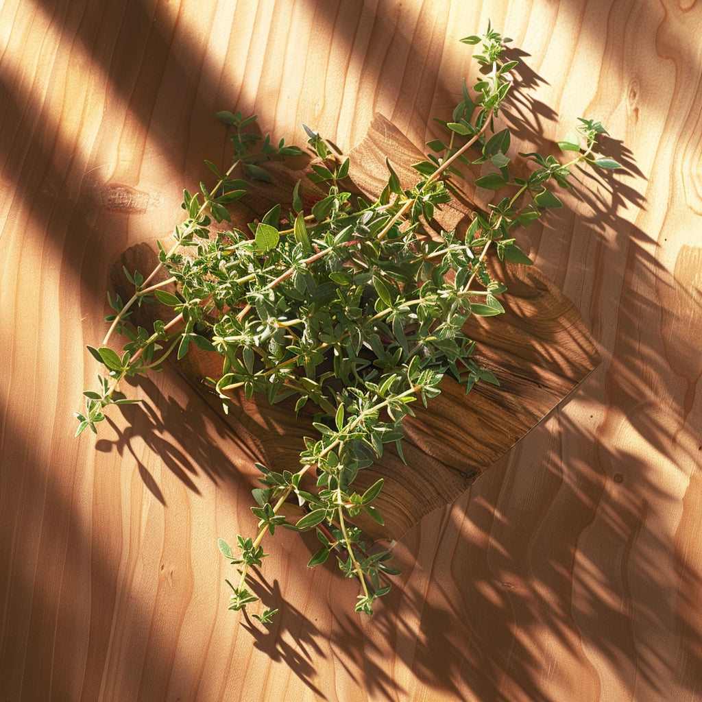 Con sus pequeñas hojas verdes y tallos leñosos, el tomillo tiene un aroma potente y un sabor distintivo que se intensifica al cocinarse. Su perfil de sabor combina notas de pino, limón y menta, lo que lo hace un favorito en muchas preparaciones culinarias.